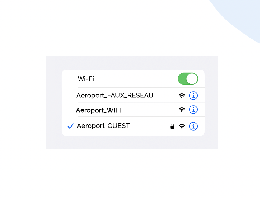 Valider le nom du réseau ou de l’emplacement où vous êtes. Ne vous connectez pas sur des réseaux non-sécurisés et avec des noms louches.